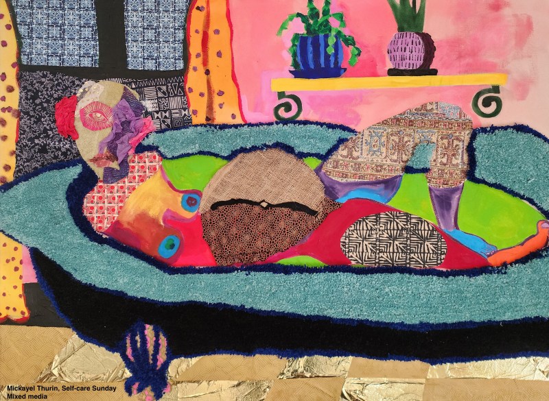 ART: Mickayel Thurin — Self-care Sunday Mixed media 56” X 42”